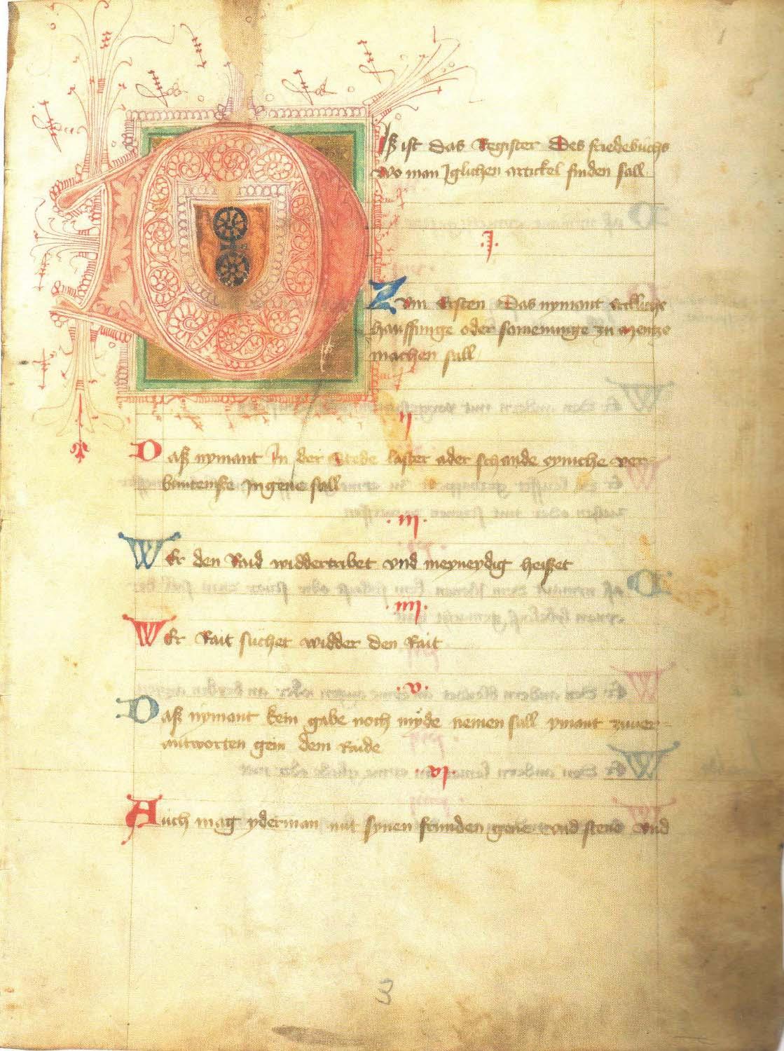 Mainz, Stadtarchiv, 4/50 ("Mainzer Friedebuch" 1437), Bl. 1r