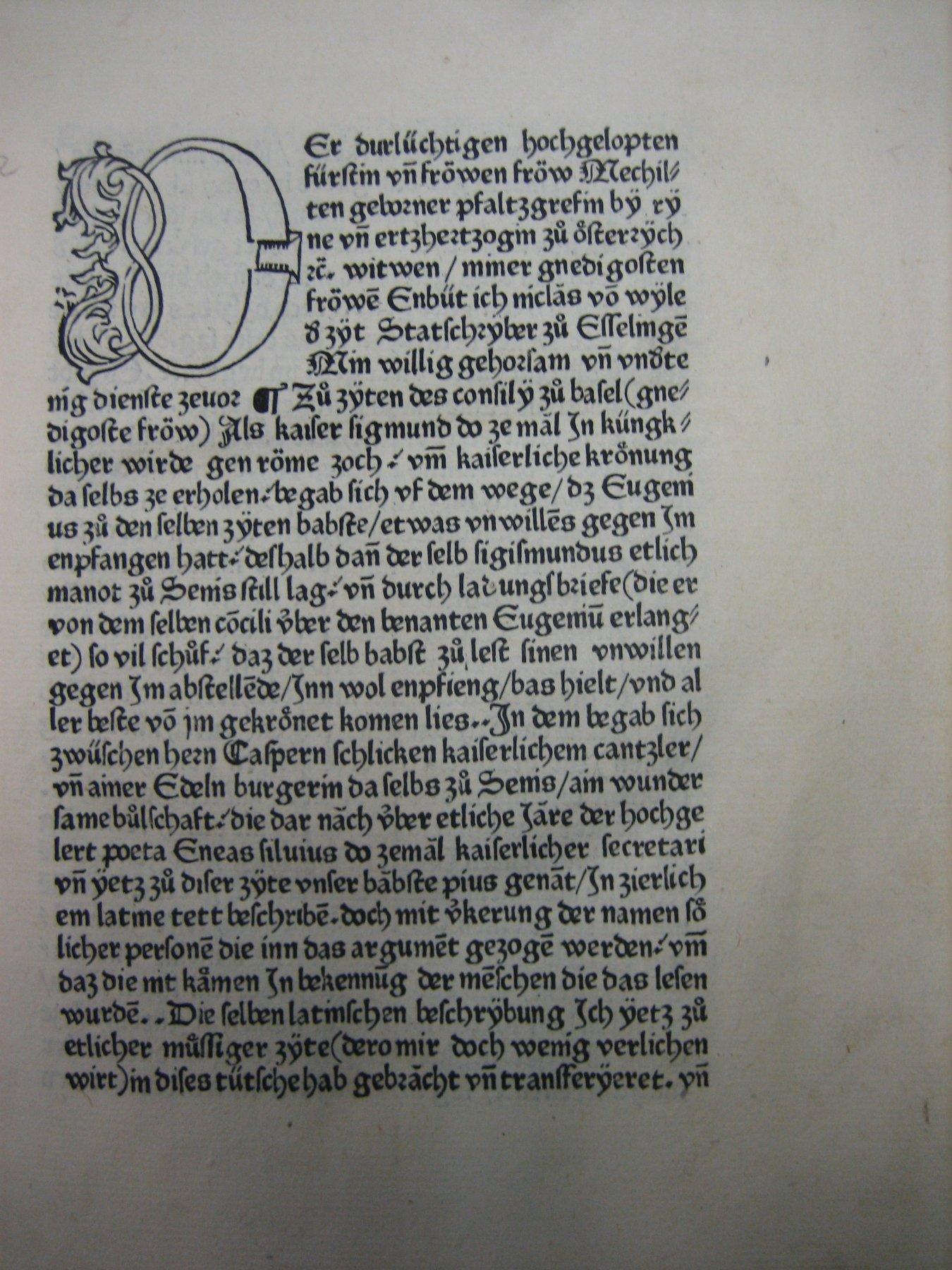 [ Druckansicht ] Zoom: [ + ] [ 1:1 ] [ Standard ] [ - ] [ Abb. vergrößert in extra Fenster öffnen ]Zum Scrollen der Abbildung bitte die unter dem Bild angebrachte Scrollleiste bedienen. Quelle: Berlin, SBB, Inc. 1138,5 (mit freundlicher Genehmigung der SB).Zugeordnet bei:MRFH 21510 [Esslingen: Konrad Fyner, nach dem 5. April 1478] (Druckbeschreibung)