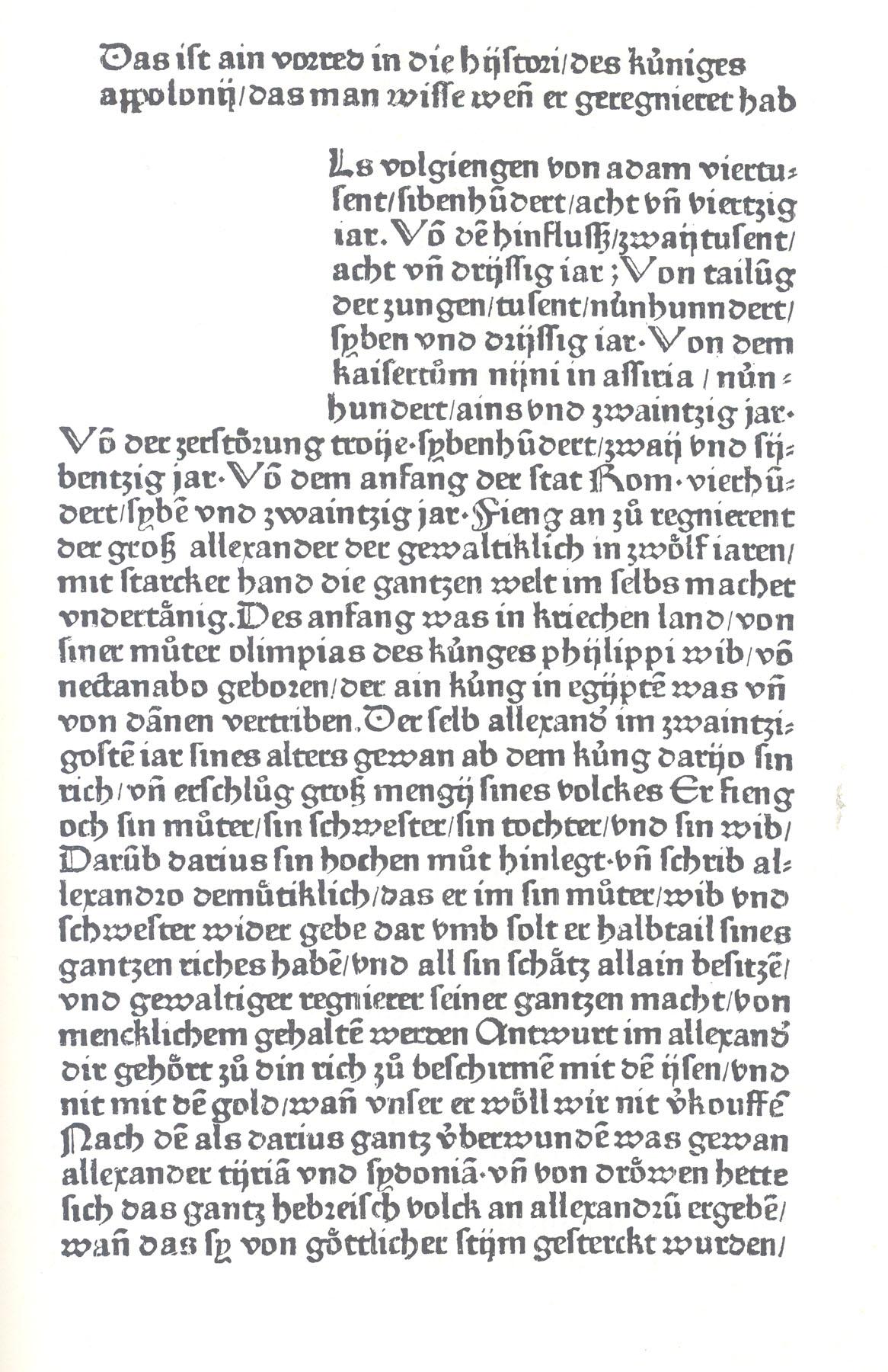 Quelle: Appollonius von Tyrus. Mit einem Nachwort von H. Melzer. Griseldis. Mit einem Nachwort von H.-D. Kreuder. Lucidarius. Mit einem Nachwort von H.-D. Kreuder. 2. Nachdr. der Ausg. Augsburg 1471 und 1516. (Deutsche Volksbücher in Faksimiledrucken Reihe, A / 2) Hildesheim / New York 2006. ![]() Zugeordnet bei: