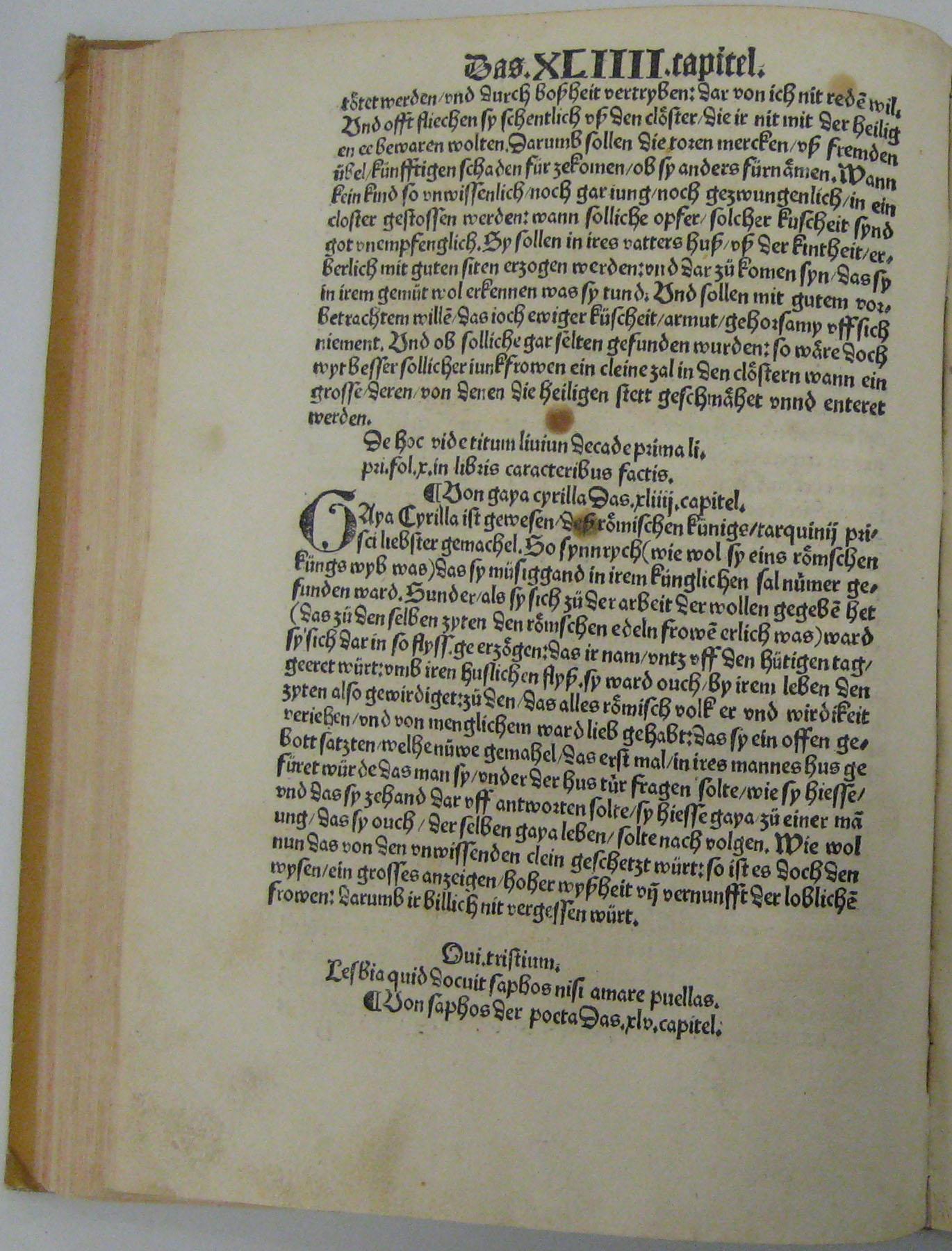 [ Druckansicht ] Zoom: [ + ] [ 1:1 ] [ Standard ] [ - ] [ Abb. vergrößert in extra Fenster öffnen ]Zum Scrollen der Abbildung bitte die unter dem Bild angebrachte Scrollleiste bedienen. Quelle: Karlsruhe, LB, Sd 3 (mit freundlicher Genehmigung der LB).Zugeordnet bei:MRFH 20430 Straßburg: Johann Prüß, 1488 (Druckbeschreibung)