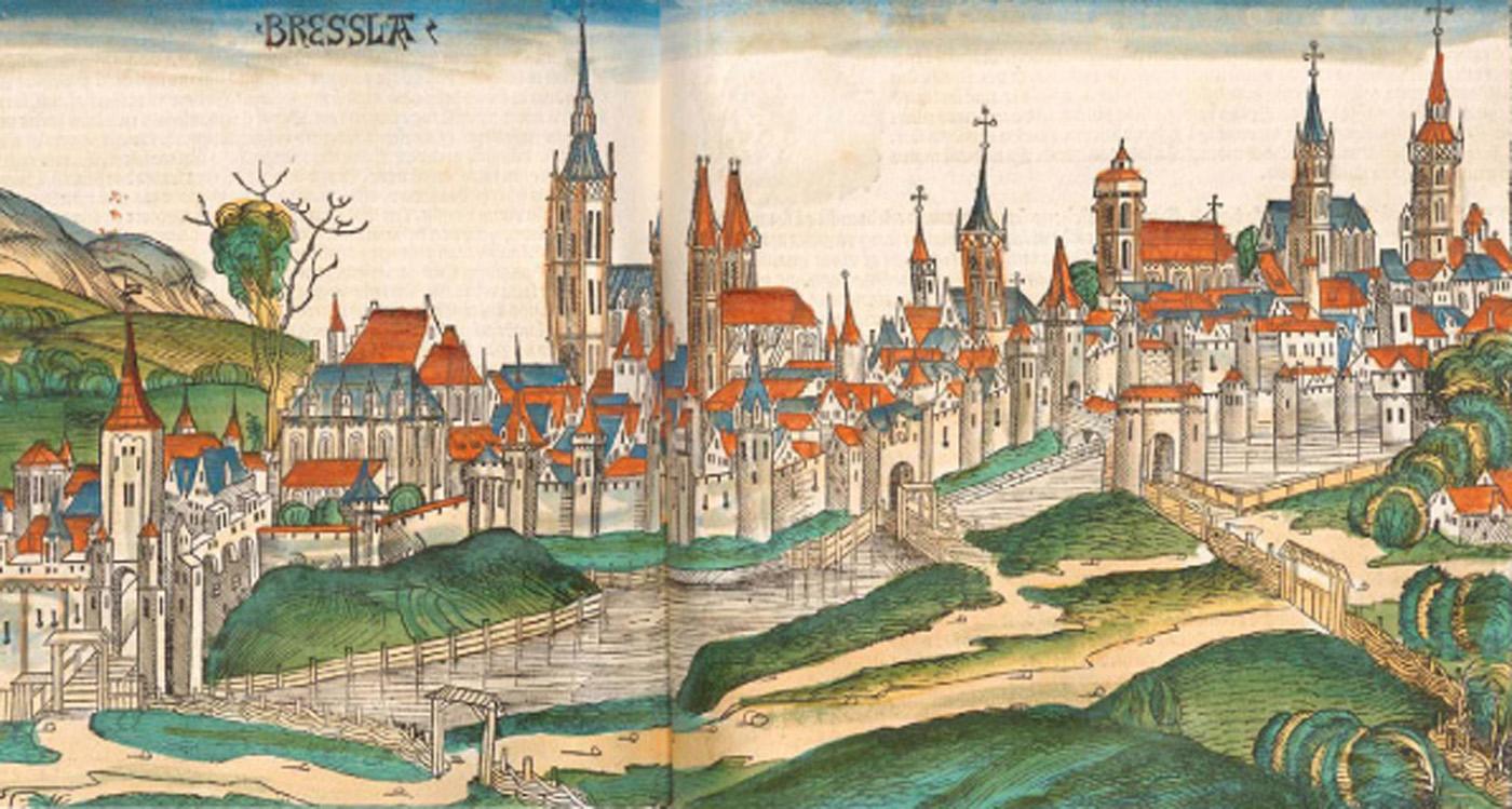 [ Druckansicht ] Zoom: [ + ] [ 1:1 ] [ Standard ] [ - ] [ Abb. vergrößert in extra Fenster öffnen ]Zum Scrollen der Abbildung bitte die unter dem Bild angebrachte Scrollleiste bedienen. Ansicht von Breslau, aus: H. Schedel 'Liber Chronicarum', Ex. München, BSB, Rar 287 (digital), fol. CCXXXIIIIf.Zugeordnet bei:MRFH 0010 Eschenloer, Peter (Personeneintrag)MRFH 0010 Eschenloer, Peter (Biographie)
