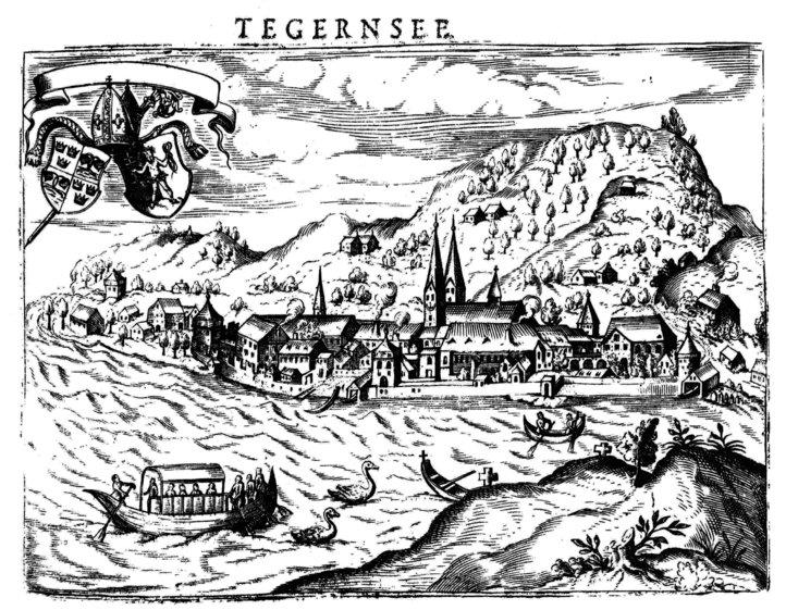 Carl Stengel: Tegernsee (Kupferstich um 1619 aus der Monasteriologia I)