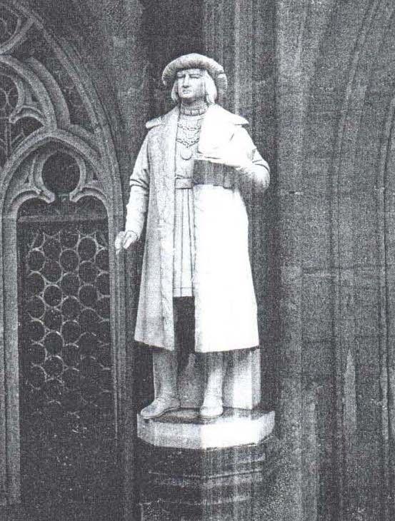 Statue Roths an der Marienkirche Zwickau. Quelle: Metzler, R. (Hg.): Stephan Roth 1492-1546. Stadtschreiber in Zwickau und Bildungsbürger der Reformationszeit. Biographie. Edition der Briefe seiner Freunde Franz Pehem, Altenburg, und Niolaus Günther, Torgau (Quellen und Forschungen zur sächsischen Geschichte 32). Leipzig 2008, S. 657.