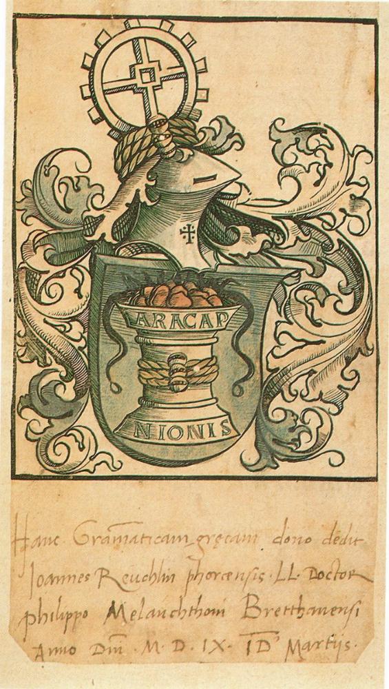 Quelle: Rhein, S.: Johannes Reuchlin (1455-1522). Ein deutscher „uomo universale“. In: Schmidt, P. G. (Hg.): Humanismus im Deutschen Südwesten. Biographische Profile. Im Auftrag der Stiftung "Humanismus heute" des Landes Baden-Württemberg. Sigmaringen 1993, S. 59-75, S. 65, Abb. 1.