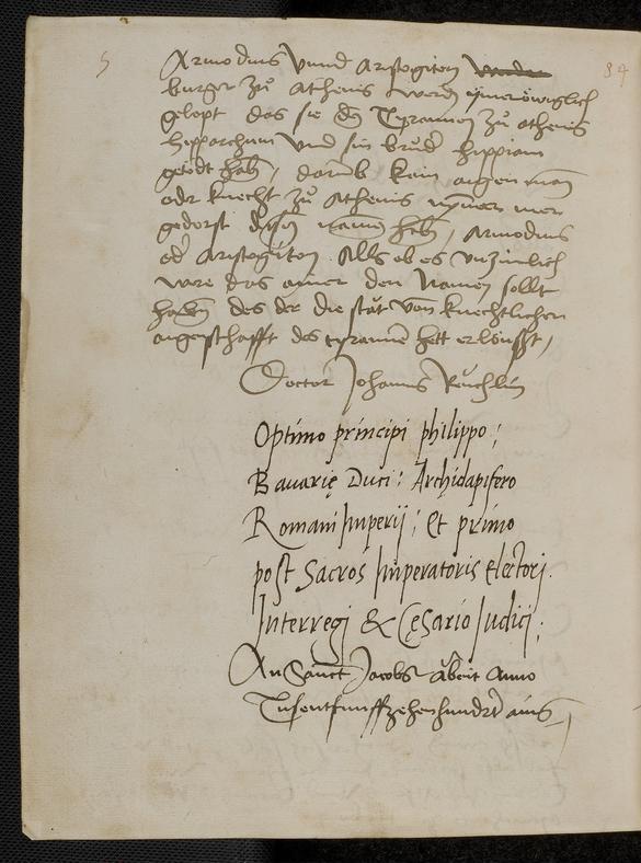 Autograph Reuchlins, Widmung auf Schlussblatt der Anmerkungen zu den Tusculanischen Gesprächen