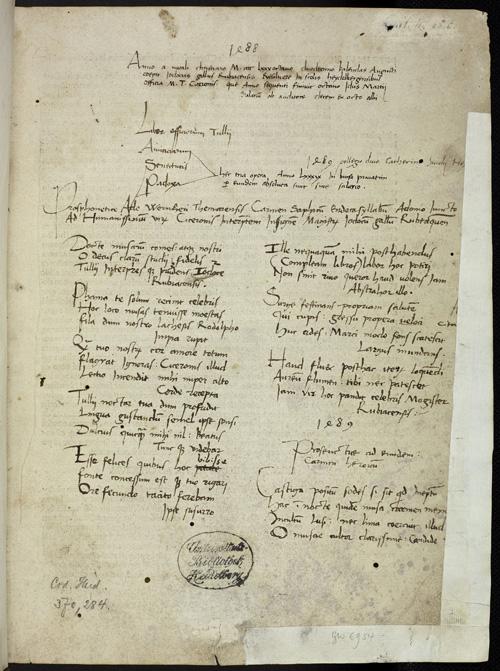 Notizen zu Cicero-Vorlesungen des Jodocus Gallus in Heidelberg zwischen 21. Juli 1488 und 22. Febr. 1489