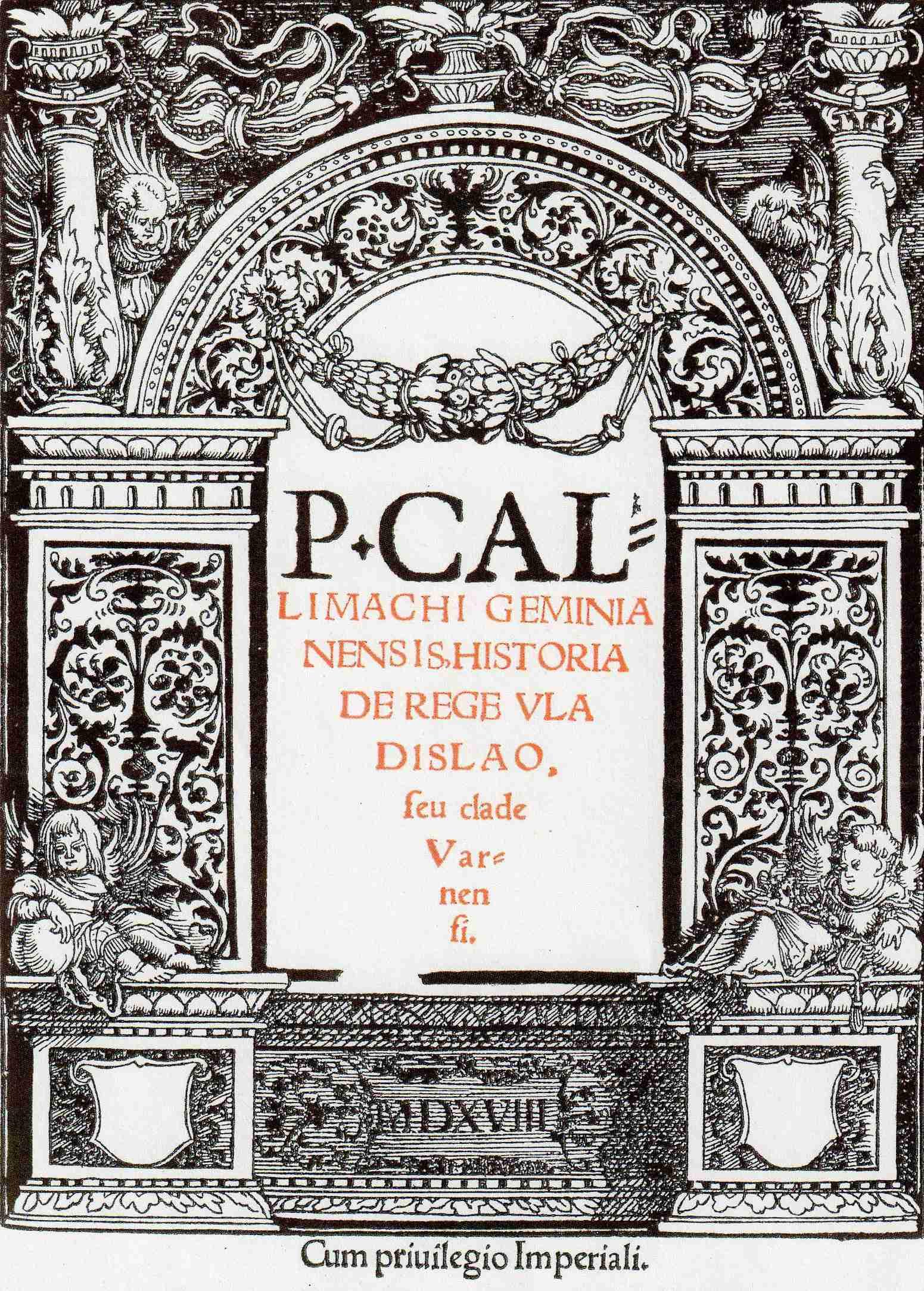 Titelblatt von Scheuflers Callimachus-Ausgabe von 1519. Quelle: Schottenloher, K.: Der Freisinger Domherr und Humanist Dr. Sigismund Scheufler (1475-1522). Ein Beitrag zur Geschichte der Freisinger Dombibliothek. In: Schlecht, J. (Hg.): Wissenschaftliche Festgabe zum zwölfhundertjährigen Jubiläum des heiligen Korbinian. Mit 29 Tafeln, 61 Textabbildungen und 1 Karte. München 1924, S. 376-402, Tafel 17.