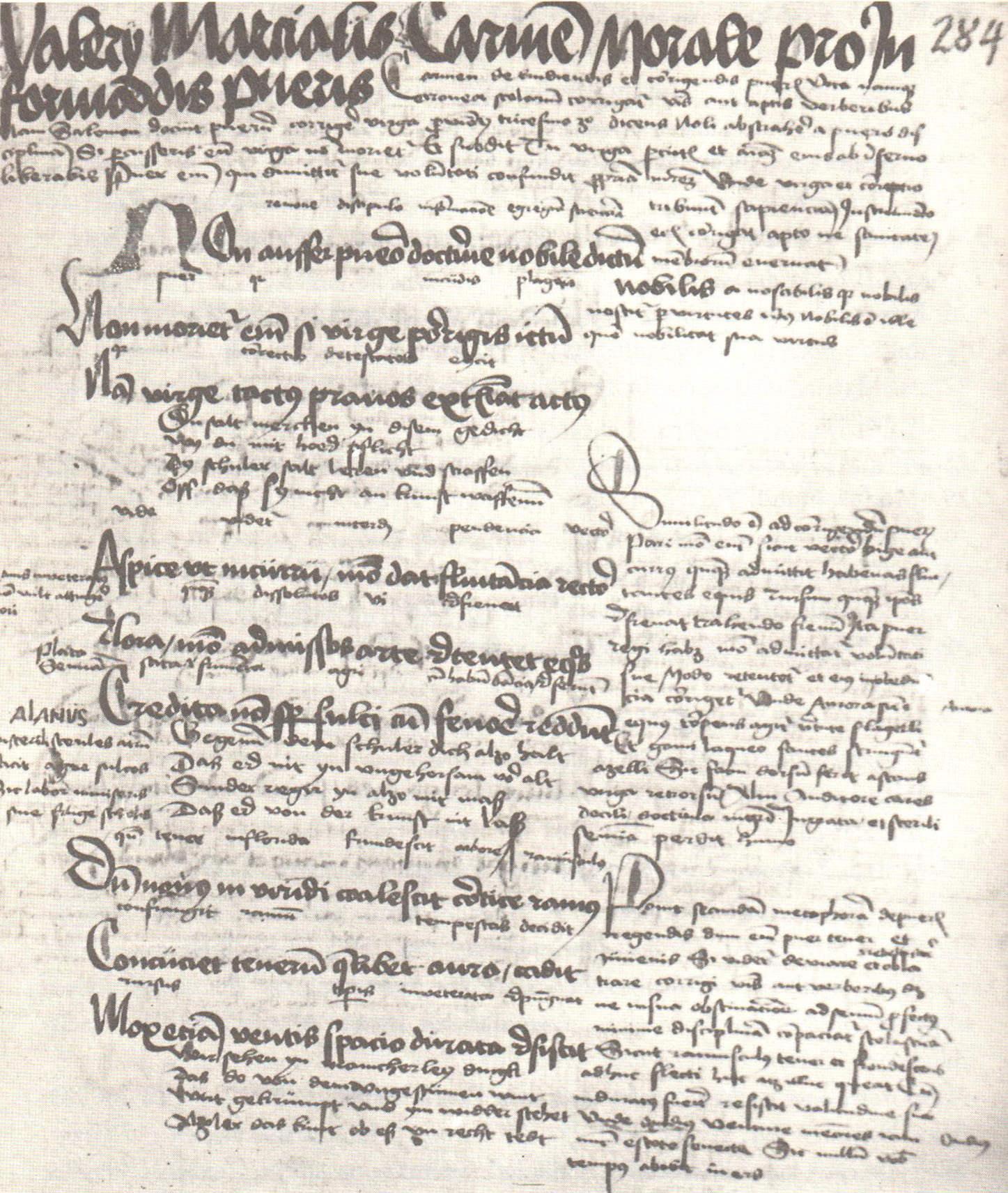 Leipziger Studienhandschrift von Johannes Zentgraf: Gotha, Forschungsbibliothek, Cod. Gymn. 1, Bl. 284r. Quelle: Henkel, N.: Deutsche Übersetzungen lateinischer Schultexte. Ihre Verbreitung und Funktion im Mittelalter und in der frühen Neuzeit. Mit einem Verzeichnis der Texte (Münchener Texte und Untersuchungen zur deutschen Literatur des Mittelalters 90). München [u.a.] 1988, Abb. S. 168.