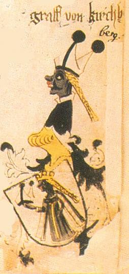 [ Druckansicht ] Zoom: [ + ] [ 1:1 ] [ Standard ] [ - ] [ Abb. vergrößert in extra Fenster öffnen ]Zum Scrollen der Abbildung bitte die unter dem Bild angebrachte Scrollleiste bedienen. Wappen der Grafen von Kirchberg (1459), Quelle: Becher, C./Gamber, O. (Hgg.): Die Wappenbücher Herzog Albrechts VI. von Österreich: Ingeram-Codex d. ehem. Bibliothek Cotta. Wien u.a. 1986, S. 90.Zugeordnet bei:MRFH 1460 Kirchberg, Grafen von (Biographie)