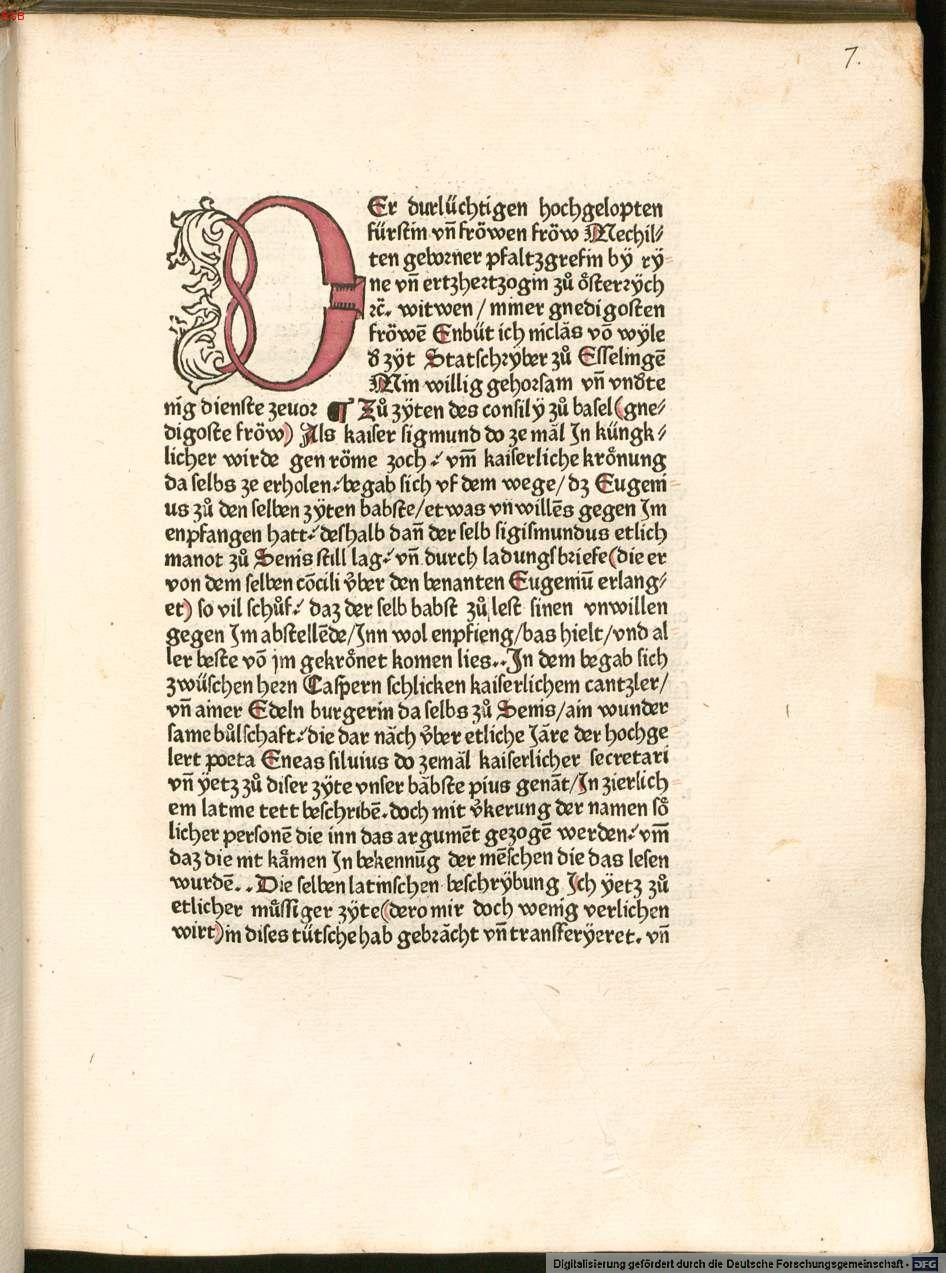 [ Druckansicht ] Zoom: [ + ] [ 1:1 ] [ Standard ] [ - ] [ Abb. vergrößert in extra Fenster öffnen ]Zum Scrollen der Abbildung bitte die unter dem Bild angebrachte Scrollleiste bedienen. Quelle: München, BSB, 2. Inc.s.a. 1106a/1, Bl. 8a.Zugeordnet bei:MRFH 0021 Niklas von Wyle (Biographie)