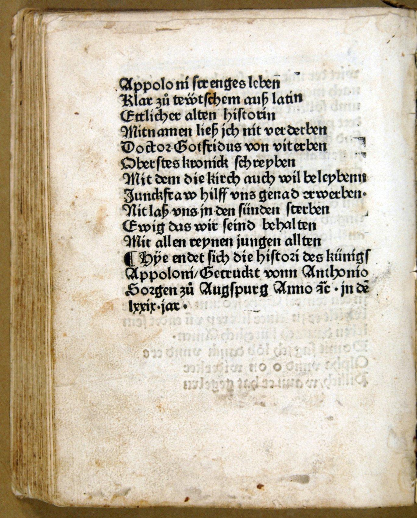 [ Druckansicht ] Zoom: [ + ] [ 1:1 ] [ Standard ] [ - ] [ Abb. vergrößert in extra Fenster öffnen ]Zum Scrollen der Abbildung bitte die unter dem Bild angebrachte Scrollleiste bedienen. Quelle: Augsburg, SStB, 4° Ink. 231 (mit freundlicher Genehmigung der SStB).Zugeordnet bei:MRFH 20200 Augsburg: Anton Sorg, [14]79 (Druckbeschreibung)