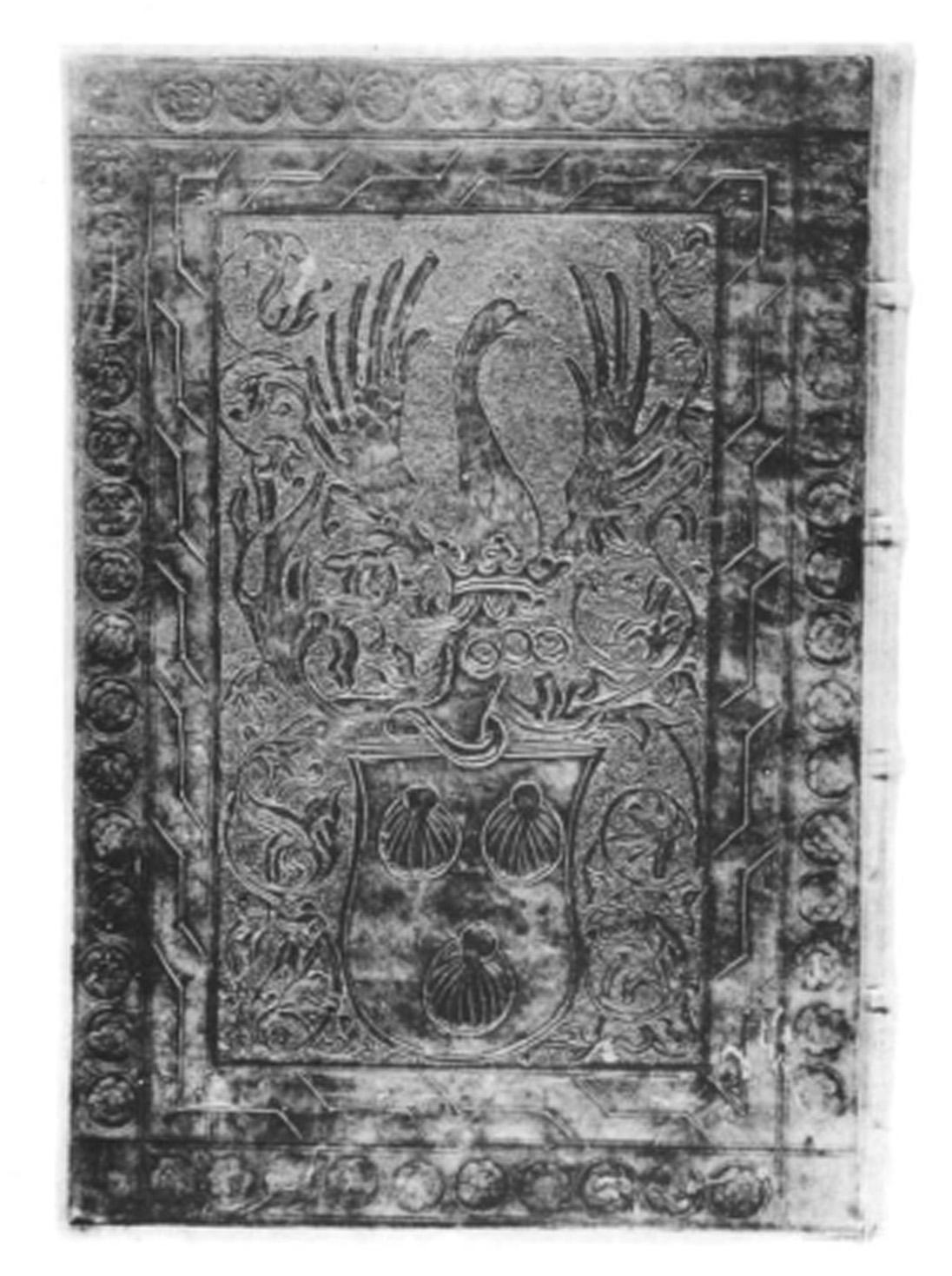 [ Druckansicht ] Zoom: [ + ] [ 1:1 ] [ Standard ] [ - ] [ Abb. vergrößert in extra Fenster öffnen ]Zum Scrollen der Abbildung bitte die unter dem Bild angebrachte Scrollleiste bedienen. Quelle: Goldschmidt, E. P.: Some cuir-cisselé bookbindings in English libraries. In: The Library 13 (1933), S. 337-365, Tafel VI.Zugeordnet bei:MRFH 20450 Nürnberg: Anton Koberger, 24. Juli 1473 (Druckbeschreibung)