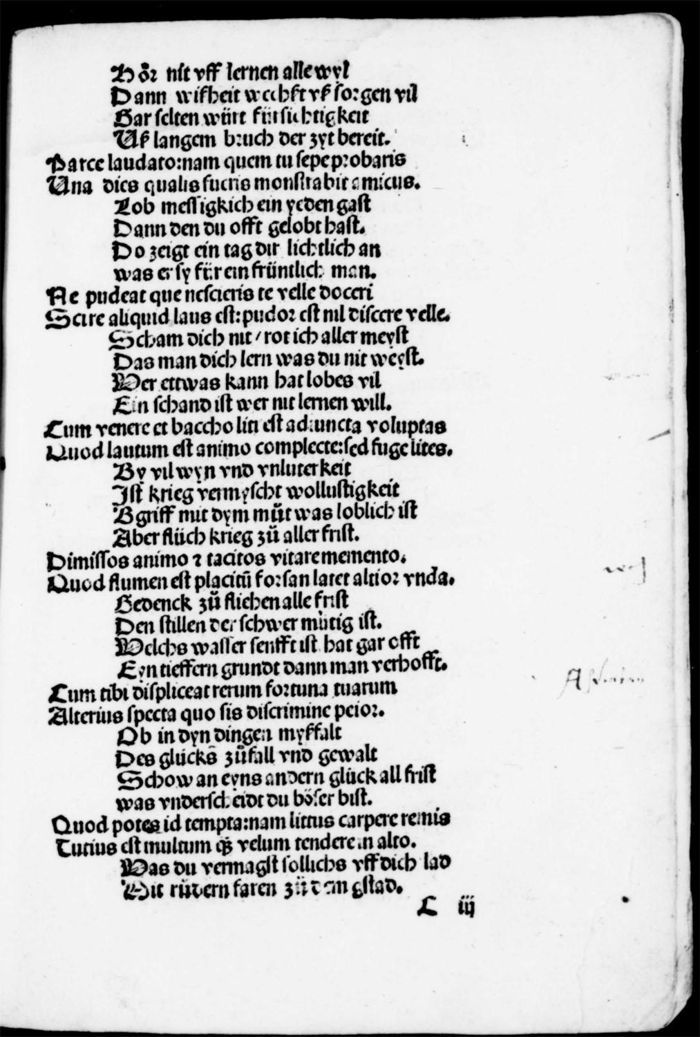 [ Druckansicht ] Zoom: [ + ] [ 1:1 ] [ Standard ] [ - ] [ Abb. vergrößert in extra Fenster öffnen ]Zum Scrollen der Abbildung bitte die unter dem Bild angebrachte Scrollleiste bedienen. Quelle: St. Florian (A), Aug, Ink. I.2554 (mit freundlicher Genehmigung des Aug).Zugeordnet bei:MRFH 20775 Straßburg: Matthias Brant, [um 1499] (Druckbeschreibung)