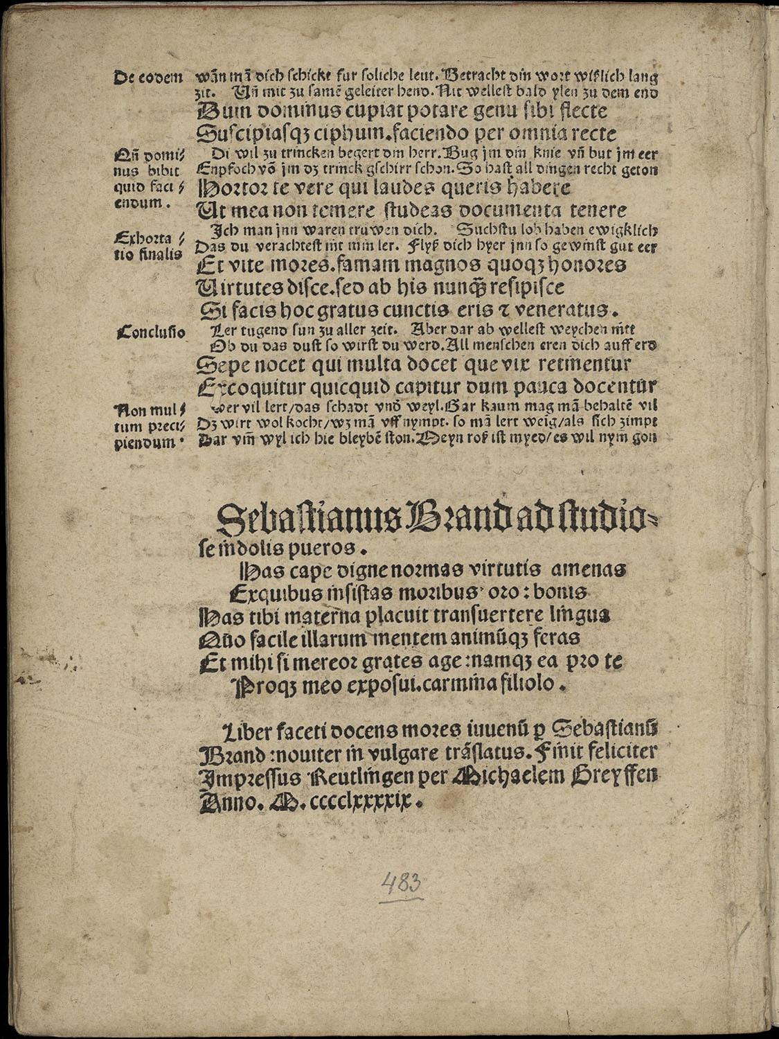 [ Druckansicht ] Zoom: [ + ] [ 1:1 ] [ Standard ] [ - ] [ Abb. vergrößert in extra Fenster öffnen ]Zum Scrollen der Abbildung bitte die unter dem Bild angebrachte Scrollleiste bedienen. Quelle: Strasbourg (F), BNU, K 3151 a (mit freundlicher Genehmigung der BNU).Zugeordnet bei:MRFH 20955 Reutlingen: Michael Greyff, 1499 (Druckbeschreibung)