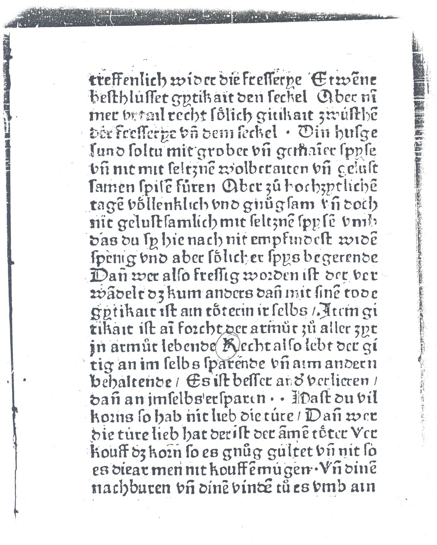 [ Druckansicht ] Zoom: [ + ] [ 1:1 ] [ Standard ] [ - ] [ Abb. vergrößert in extra Fenster öffnen ]Zum Scrollen der Abbildung bitte die unter dem Bild angebrachte Scrollleiste bedienen. Quelle: St. Gallen, Stiftsbibliothek.Zugeordnet bei:MRFH 20360 [Augsburg: Johann Blaubirer, 1480-1486] (Druckbeschreibung)