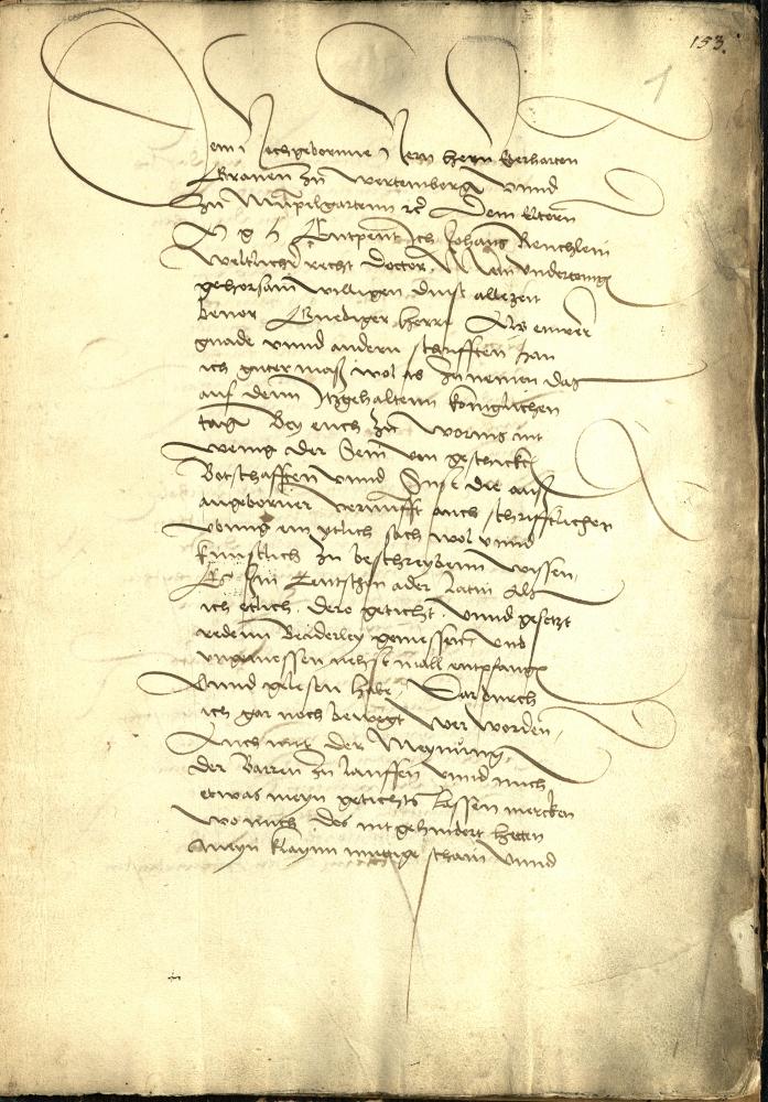 Reuchlin: Demosthenes: Erste olynthische Rede; zeitgenössische Abschrift der der am 15. Juli 1495 an Eberhard von Württemberg adressierten Übersetzung. Quelle: Dresden, SArch, Bestand 10024 Geheimer Rat, Akte Loc. 9992/1 (ehem. H 184 a). ![]() Zugeordnet bei: