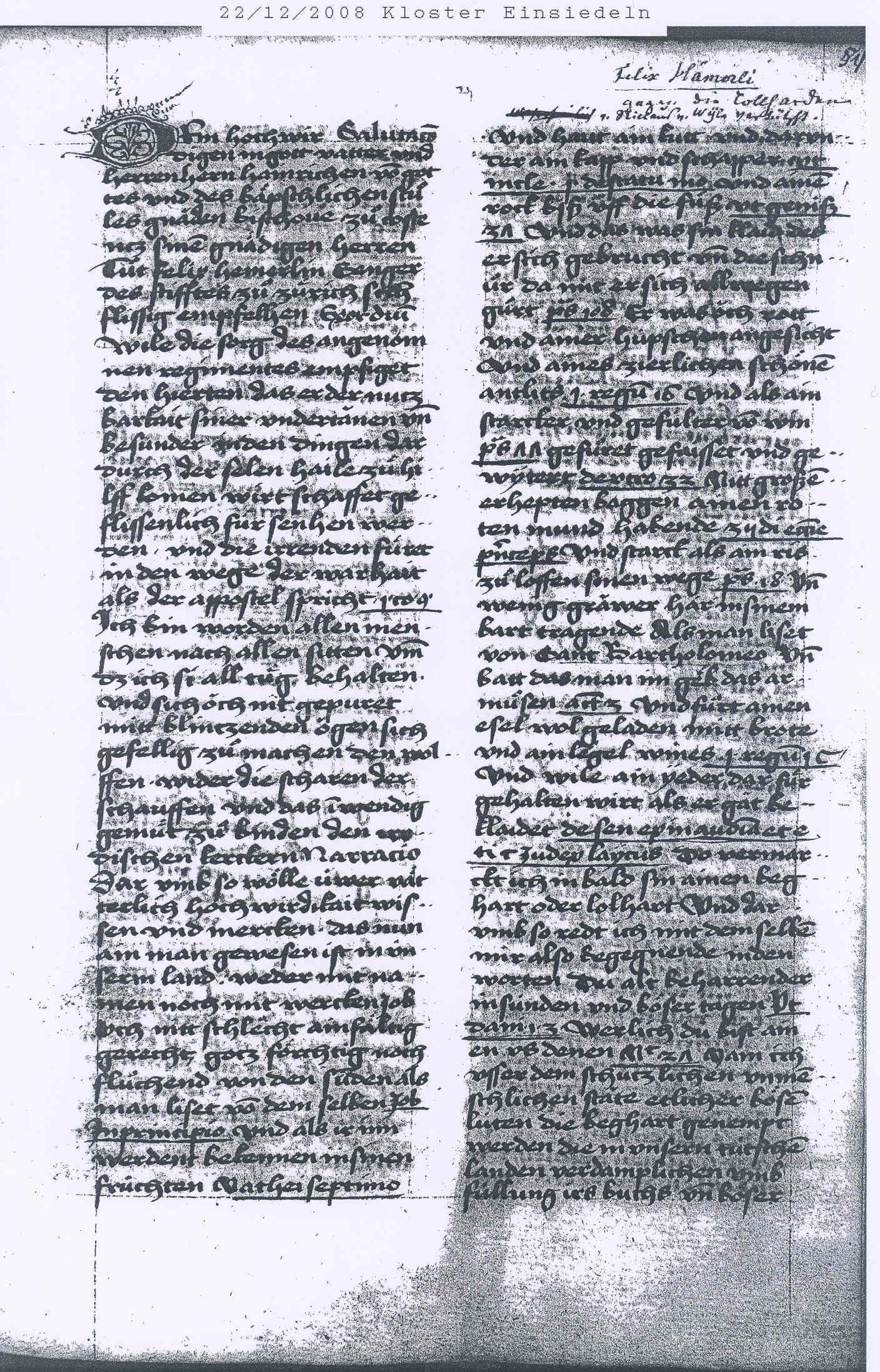 [ Druckansicht ] Zoom: [ + ] [ 1:1 ] [ Standard ] [ - ] [ Abb. vergrößert in extra Fenster öffnen ]Zum Scrollen der Abbildung bitte die unter dem Bild angebrachte Scrollleiste bedienen. Quelle: Einsiedeln, Stiftsbibliothek der Benediktinerabtei, Cod. 227, Bl. 51Zugeordnet bei:MRFH 10220 Einsiedeln (CH), Stiftsbibliothek der Benediktinerabtei, Cod. 227 (Handschriftenbeschreibung)