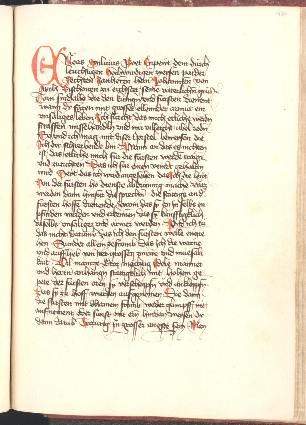 [ Druckansicht ] Zoom: [ + ] [ 1:1 ] [ Standard ] [ - ] [ Abb. vergrößert in extra Fenster öffnen ]Zum Scrollen der Abbildung bitte die unter dem Bild angebrachte Scrollleiste bedienen. Quelle: Innsbruck, Bibliothek des Tiroler Landesmuseums Ferdinadeum, Cod. FB 1050, Bl. 130rZugeordnet bei:MRFH 10430 Innsbruck (A), Bibliothek des Tiroler Landesmuseums Ferdinandeum, Cod. FB 1050 (Handschriftenbeschreibung)