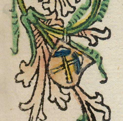 [ Druckansicht ] Zoom: [ + ] [ 1:1 ] [ Standard ] [ - ] [ Abb. vergrößert in extra Fenster öffnen ]Zum Scrollen der Abbildung bitte die unter dem Bild angebrachte Scrollleiste bedienen. Wappen Heinrich SteinhöwelsErlauchte Frauen [Ulm: Johann Zainer, 1474], Bl. 6a, Ausschnitt (Ex. Ulm, StB, 14992).Zugeordnet bei:MRFH 0035 Steinhöwel, Heinrich (Biographie)