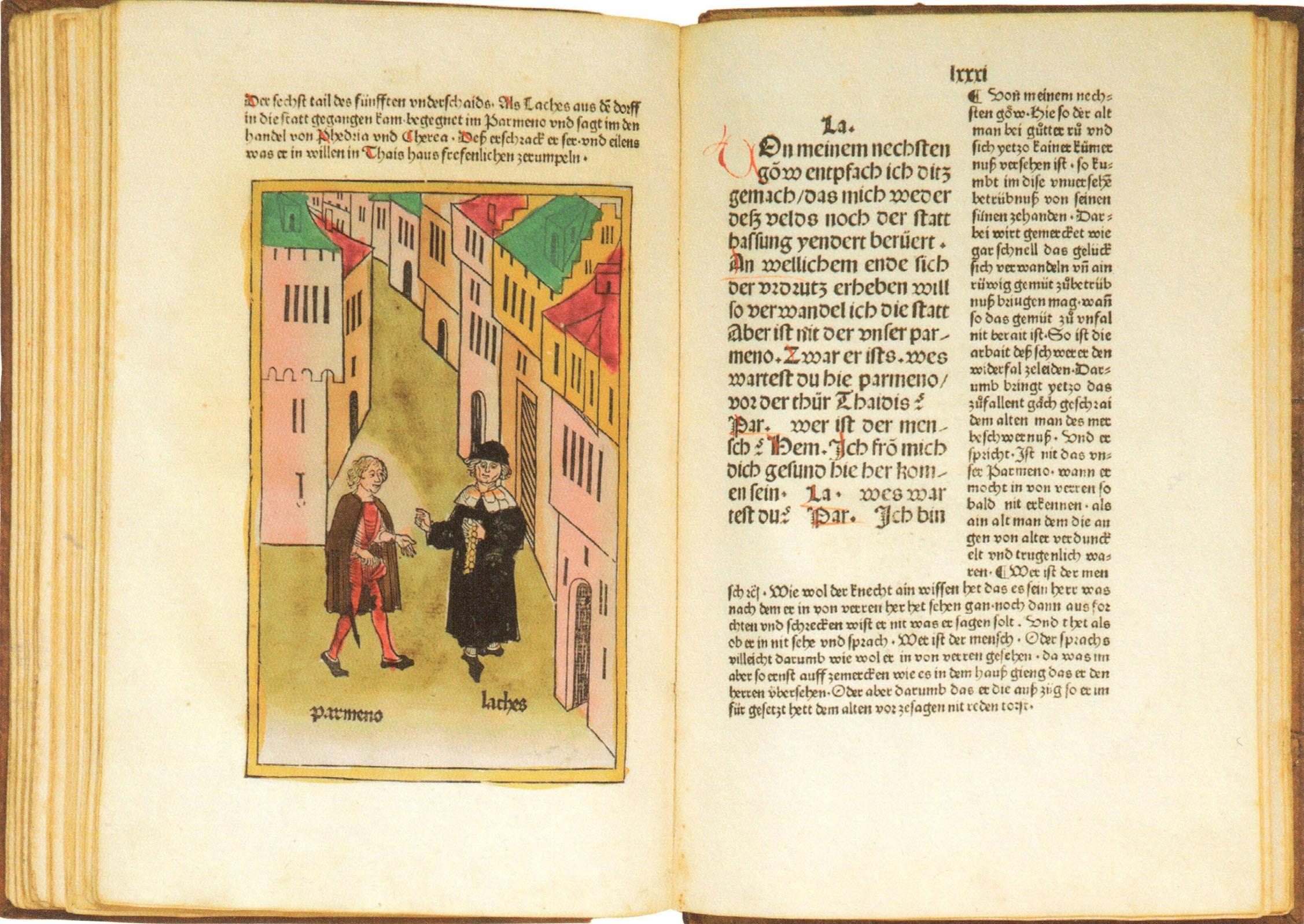Terentius Afer, Publius [Übersetzer Neithart, Hans]: 'Eunuchus' (dt.), überliefert im Ulmer Druck [Konrad Dinckmut, 1486], Ex. St. Gallen, Abb. Bl. lxxxb
