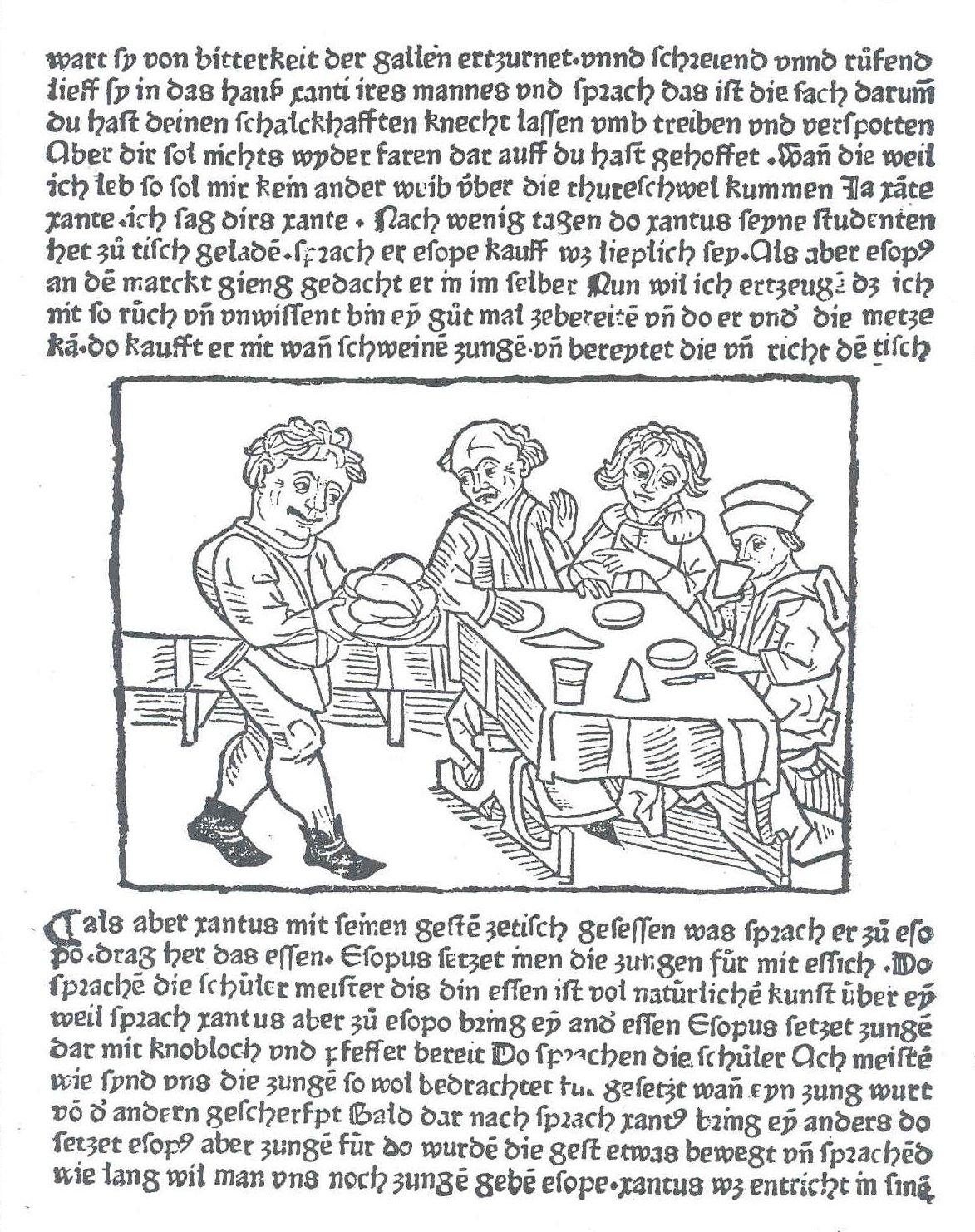 [ Druckansicht ] Zoom: [ + ] [ 1:1 ] [ Standard ] [ - ] [ Abb. vergrößert in extra Fenster öffnen ]Zum Scrollen der Abbildung bitte die unter dem Bild angebrachte Scrollleiste bedienen. Quelle: TRUHLÁR, A.: Jana Albína Ezopovy fabule a Brantovy rozprávky. Slovesnost a Umění 1901, S. 371 (Abb.).Zugeordnet bei:MRFH 20060 [Straßburg: Heinrich Knoblochtzer, um 1483] (Druckbeschreibung)