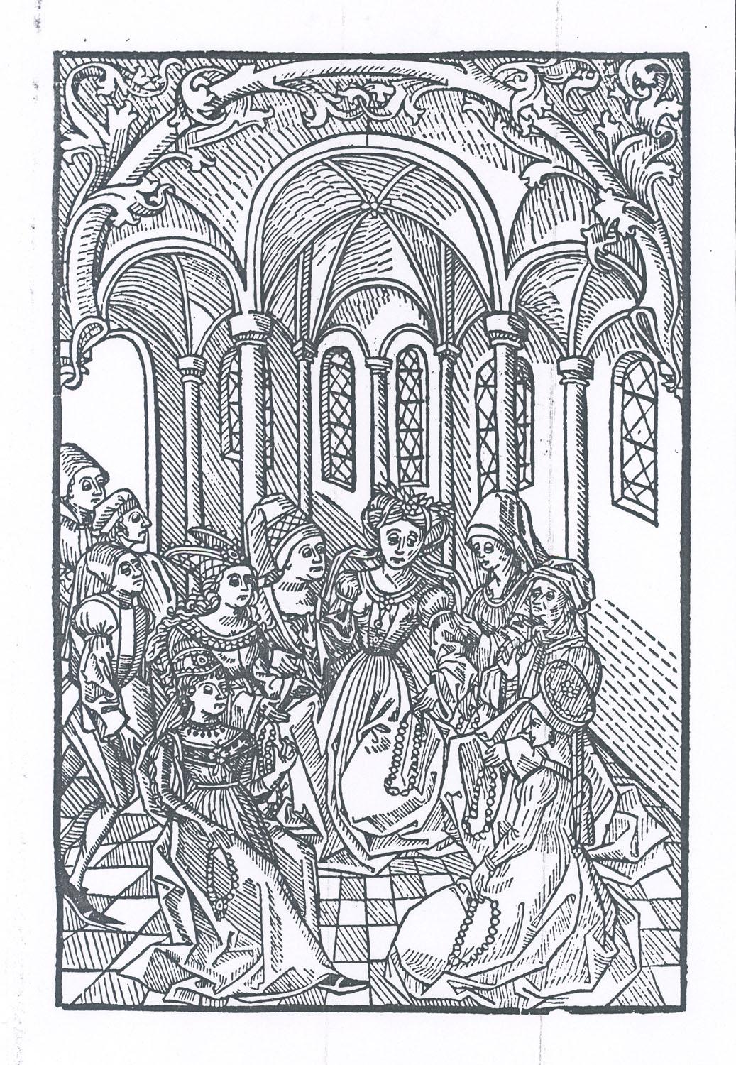 Quelle: Dillon, G.: I primi incunaboli illustrati e il 'Decameron' veneziano del 1492. In: Branca, V. (Hg.): Boccaccio visualizzato: narrare per parole e per immagini fra Medioevo e Rinascimento. Bd. 3 (Biblioteca di storia dell'arte 30, 1). Turin 2003, S. 291-318, hier: S. 304.