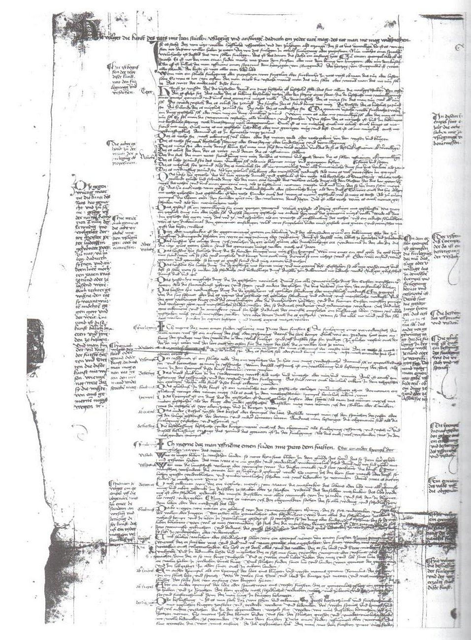 [ Druckansicht ] Zoom: [ + ] [ 1:1 ] [ Standard ] [ - ] [ Abb. vergrößert in extra Fenster öffnen ]Zum Scrollen der Abbildung bitte die unter dem Bild angebrachte Scrollleiste bedienen. Quelle: Knape, J. / Roll, B. (Hgg.): Rhetorica deutsch. Rhetorikschriften des 15. Jahrhunderts (Gratia. Bamberger Schriften zur Renaissanceforschung 40). Wiesbaden 2002, S. 232, Abb. 6.Zugeordnet bei:MRFH 10057 Basel (CH), Öffentliche Bibliothek der Universität, Cod. F V 47 (Handschriftenbeschreibung)