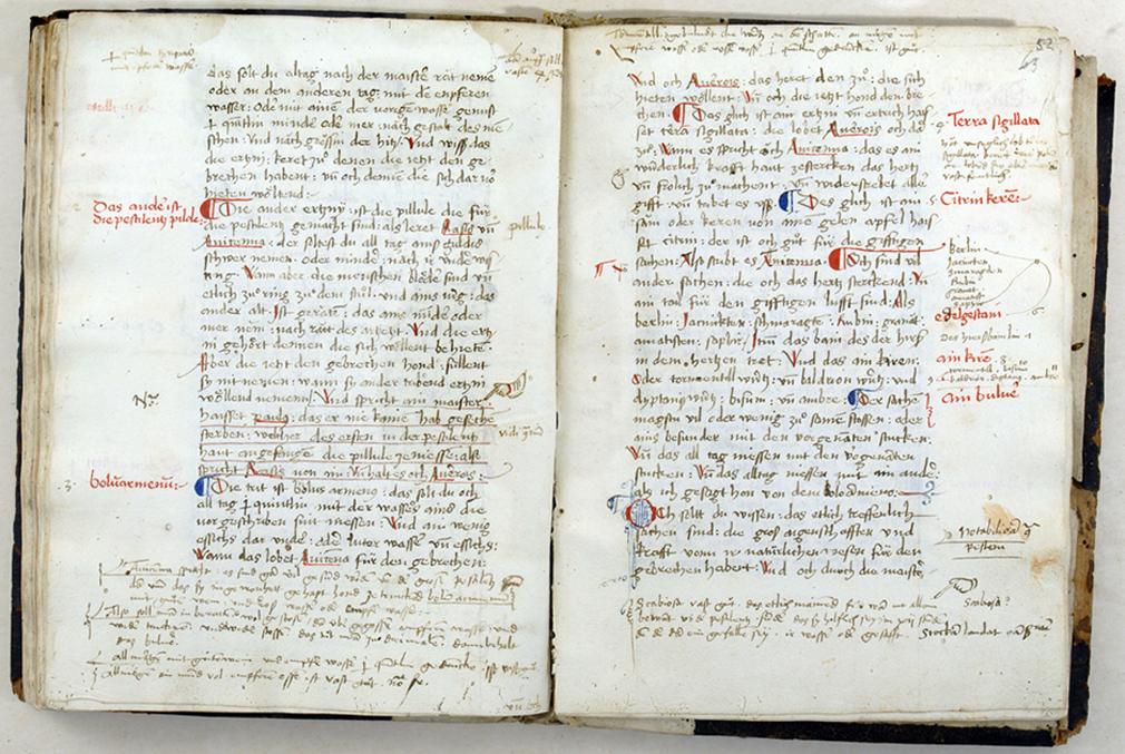 [ Druckansicht ] Zoom: [ + ] [ 1:1 ] [ Standard ] [ - ] [ Abb. vergrößert in extra Fenster öffnen ]Zum Scrollen der Abbildung bitte die unter dem Bild angebrachte Scrollleiste bedienen. Augsburg, SStB, 4° Cod. 121, Bl. 51v-52rZugeordnet bei:MRFH 10010 Augsburg, Staats- und Stadtbibliothek, 4° Cod. 121 (Handschriftenbeschreibung)