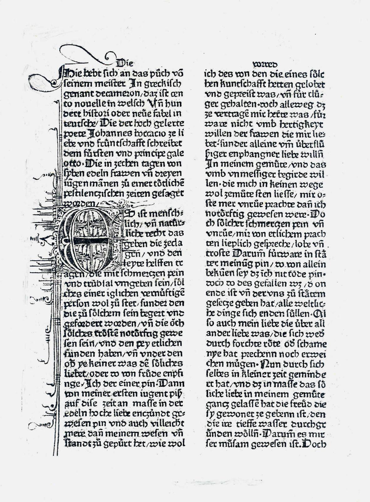 [ Druckansicht ] Zoom: [ + ] [ 1:1 ] [ Standard ] [ - ] [ Abb. vergrößert in extra Fenster öffnen ]Zum Scrollen der Abbildung bitte die unter dem Bild angebrachte Scrollleiste bedienen. Quelle: Bertelsmeier-Kierst, C.: 'Griseldis' in Deutschland. Studien zu Steinhöwel und Arigo (GRM-Beiheft 8). Heidelberg 1988, S. 2.Zugeordnet bei:MRFH 20370 Ulm: [Johann Zainer, 1476/77] (Druckbeschreibung)