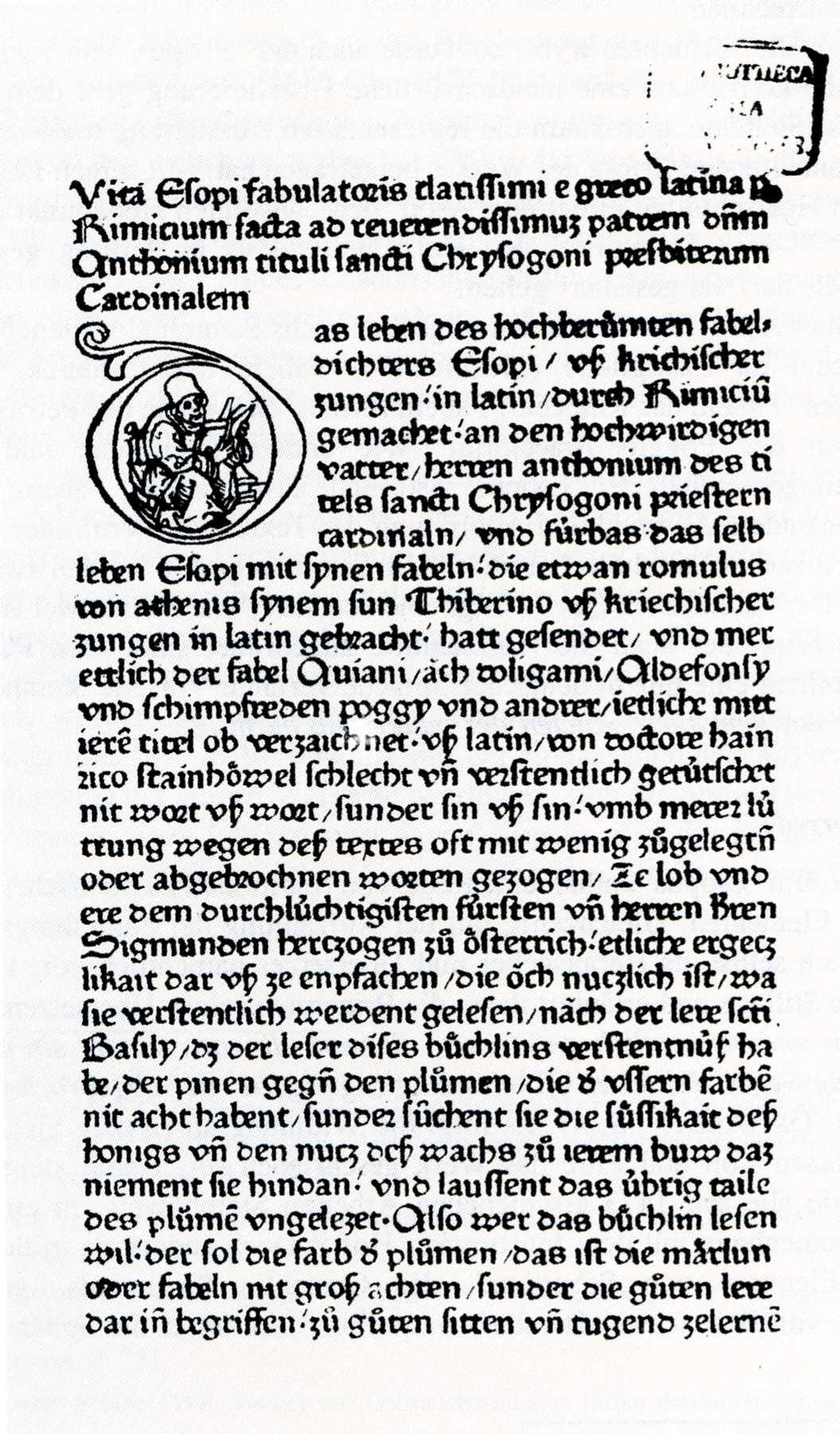 Quelle: Derendorf, B.: Der Magdeburger Prosa-Äsop. Eine mittelniederdeutsche Bearbeitung von Heinrich Steinhöwels 'Esopus' und Niklas von Wyles 'Guiscard und Sigismunda'. Text und Untersuchungen (Niederdeutsche Studien 35). Köln/Weimar/Wien 1996 (digital), S. 8, Abb. I.