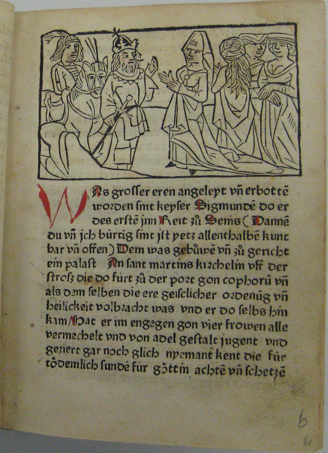 [ Druckansicht ] Zoom: [ + ] [ 1:1 ] [ Standard ] [ - ] [ Abb. vergrößert in extra Fenster öffnen ]Zum Scrollen der Abbildung bitte die unter dem Bild angebrachte Scrollleiste bedienen. Quelle: Karlsruhe, LB, 2 in 42 A 1932, 14 RH (mit freundlicher Genehmigung der LB).Zugeordnet bei:MRFH 21240 [Straßburg: Heinrich Knoblochtzer, um 1477 (vor dem 14. Januar 1478)] (Druckbeschreibung)