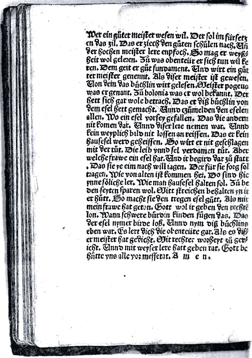 [ Druckansicht ] Zoom: [ + ] [ 1:1 ] [ Standard ] [ - ] [ Abb. vergrößert in extra Fenster öffnen ]Zum Scrollen der Abbildung bitte die unter dem Bild angebrachte Scrollleiste bedienen. Quelle: Schweinfurt, StB, Frühdruck 438 (mit freundlicher Genehmigung der StB).Zugeordnet bei:MRFH 21050 Straßburg: [Bartholomäus Kistler], [14]99 (Druckbeschreibung)